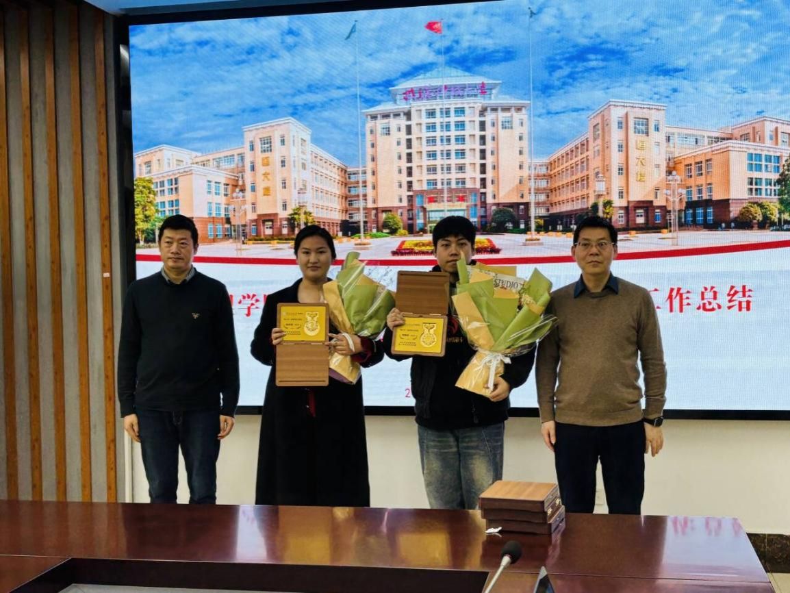 我院党委书记伍学云与院长刘海兵为支教团成员颁发鲜花与支教纪念章,以表彰他们在支教期间的优异表现。据悉,纪念章由我院特别设计,蕴含三层寓意:“萤火虫”象征我院支教团的志愿服务品牌;“丝路”寓意跨越千里的新疆支教之旅;“同心”则彰显了团队同心协力、与当地师生心手相牵的深厚情谊。每一枚纪念章上均刻有参与我院新疆支教工作的志愿者编号与姓名,体现了“用半年不长的时间,做一件终生难忘的事”的志愿理念。